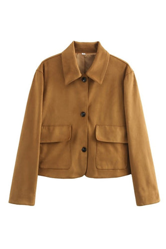 Cropped Camel Suede collared jacket