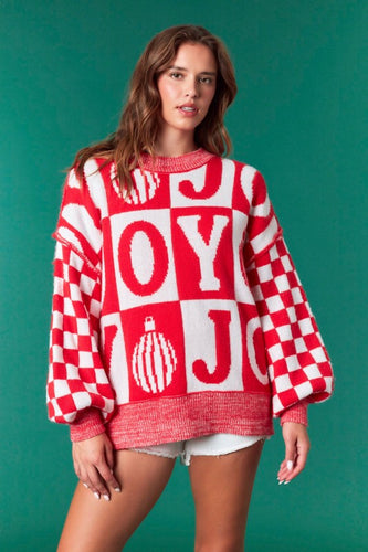 JOY - Red oversized checker balloon sleeve sweater