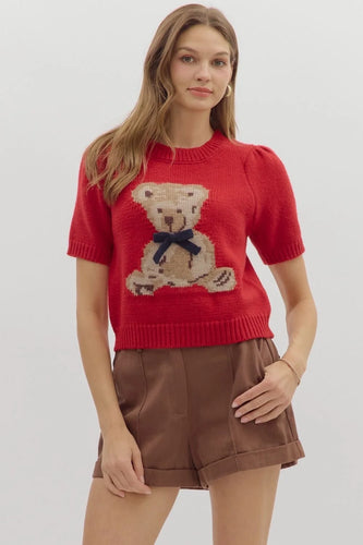 Lauren- Red Short sleeve boxy bear sweater