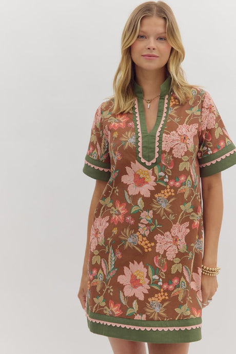 • Fall Day- Autumn tones Floral Print contrast hem mini dress