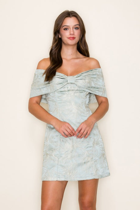 • Savannah- Front Bow Off-shoulder jacquard sage dress