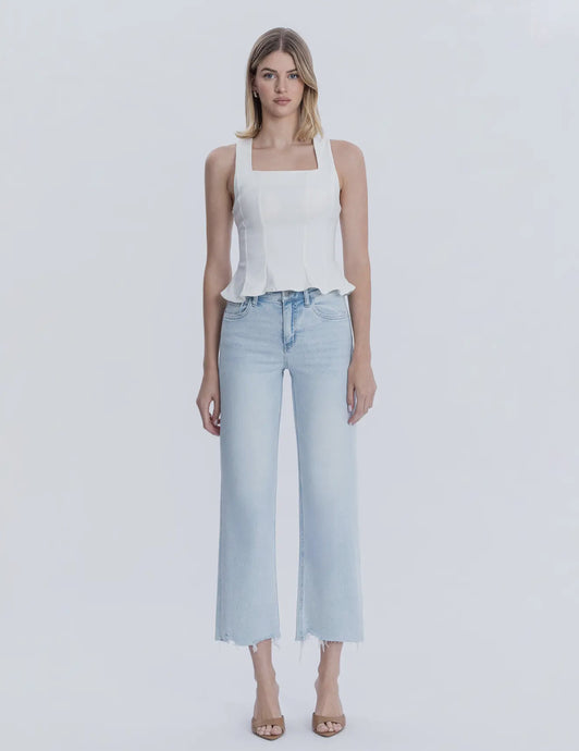 LOVERVET- Black High Rise raw hem cropped wide leg jeans LV1220BK