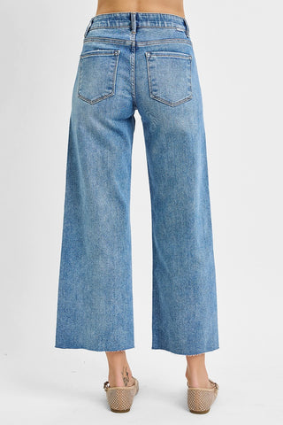 RISEN JEANS- Tummy Control Medium Wash Mid Rise Cropped wide leg jeans