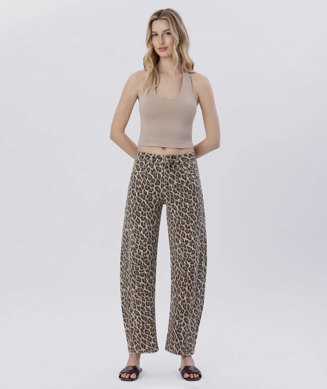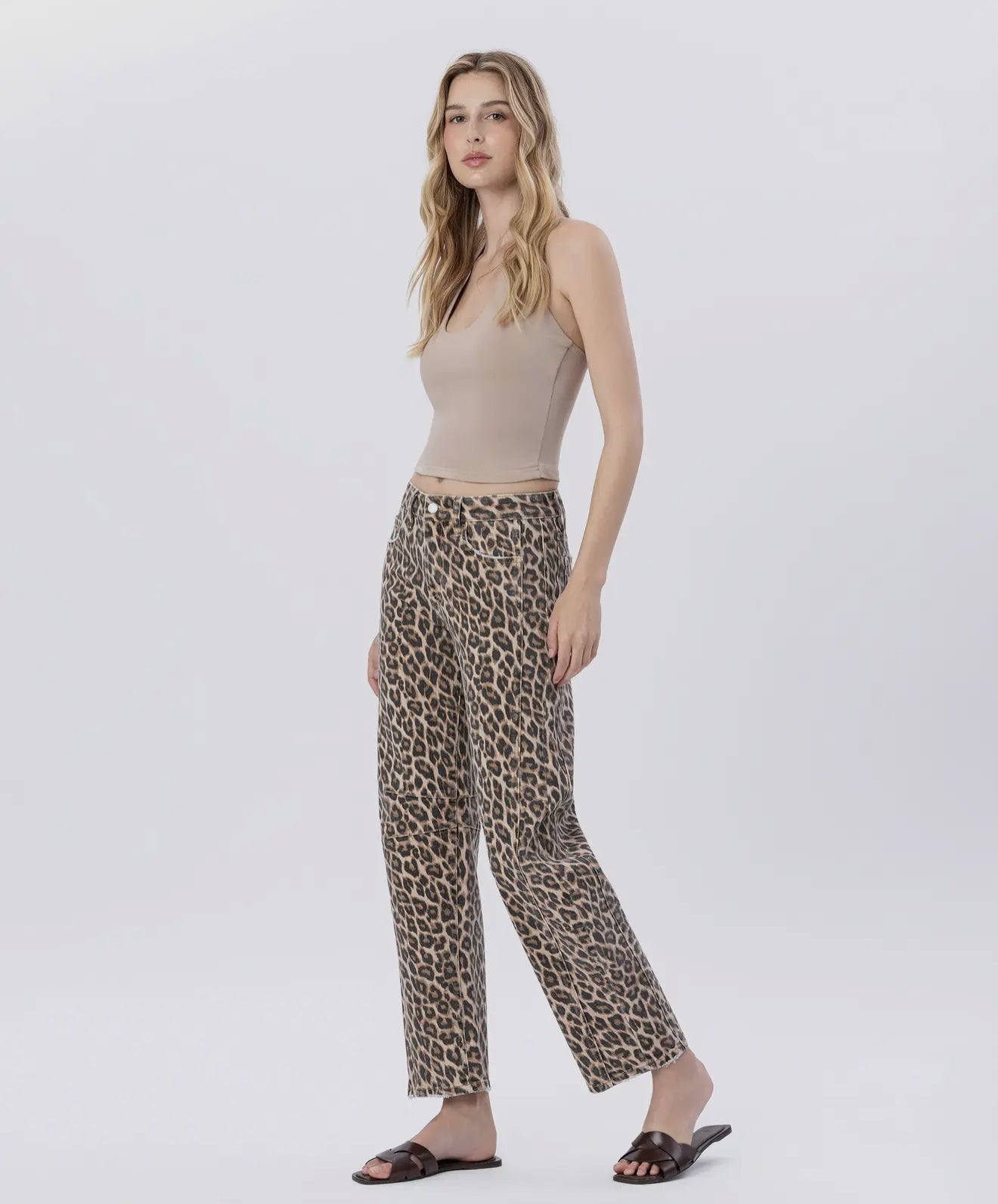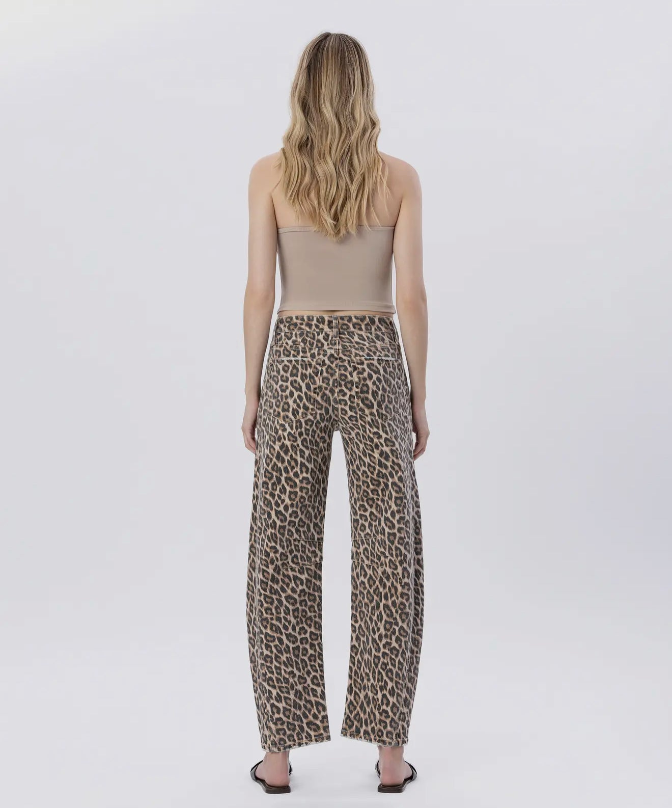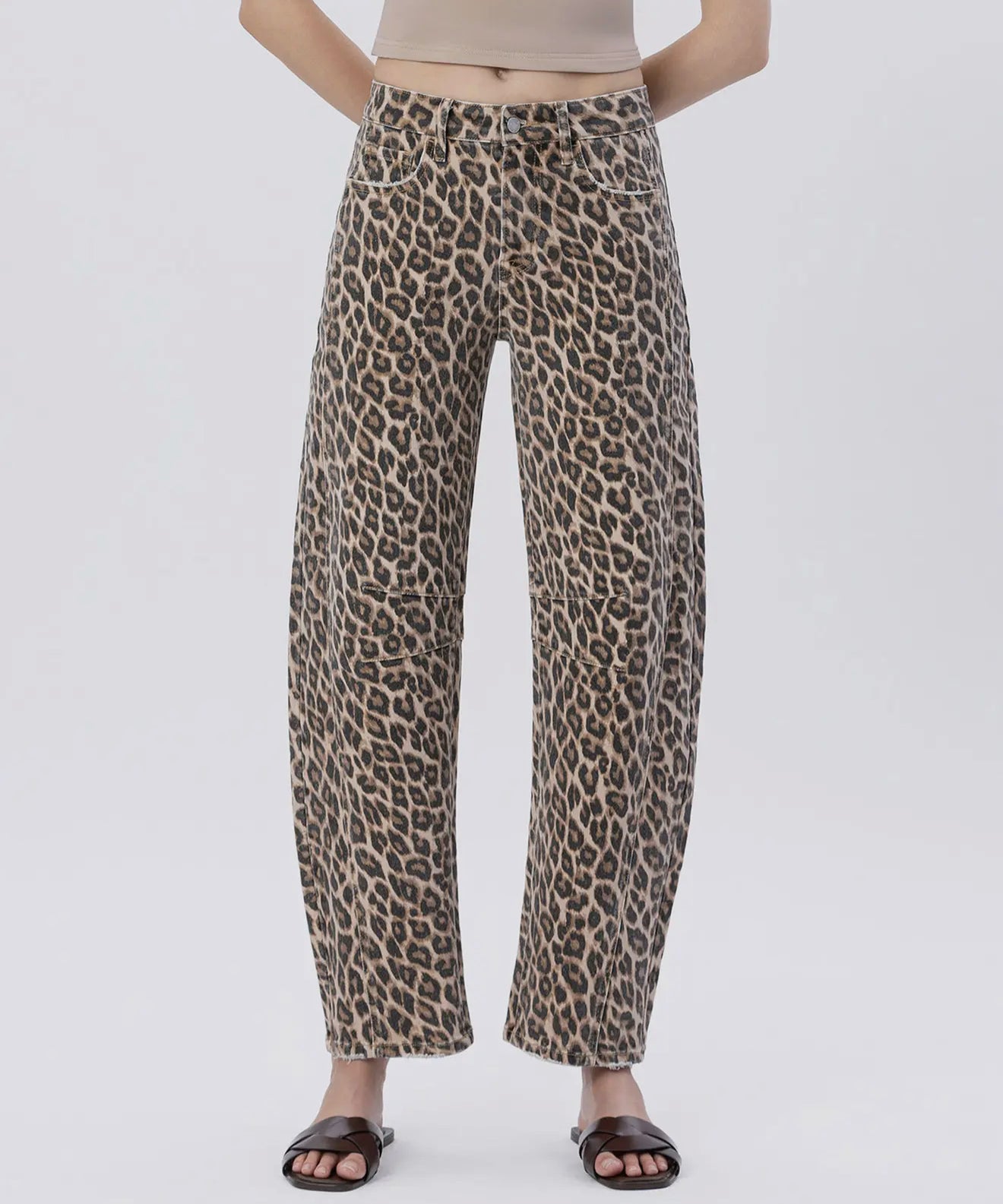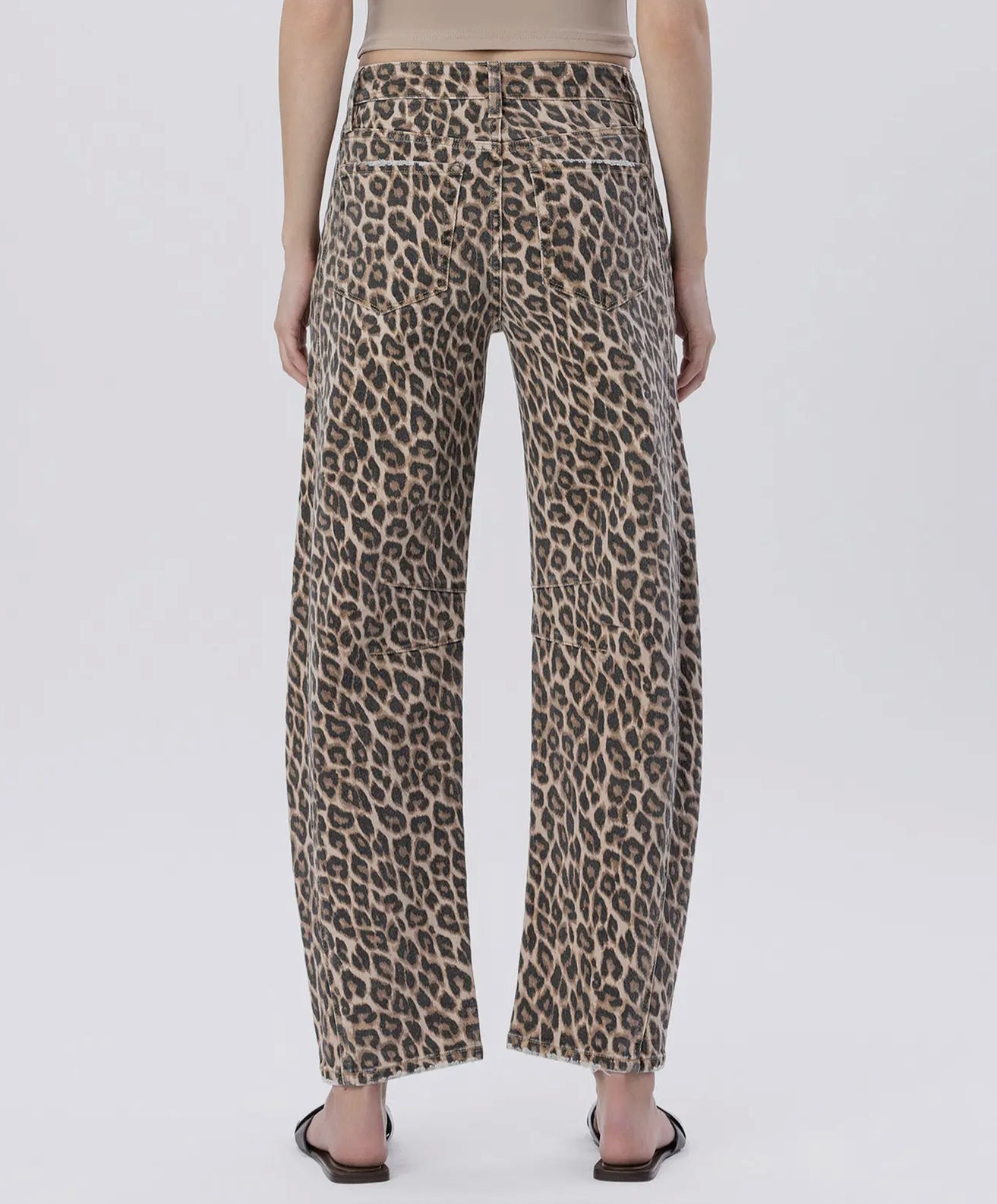 VERVET- Leopard print High Rise barrel jeans v3697lpd