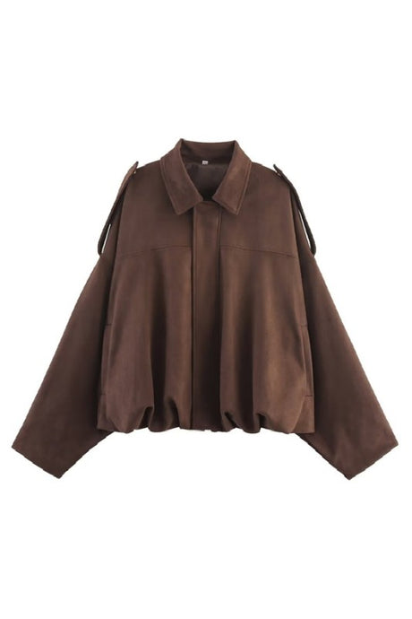 Camel Suede oversized collared jacket