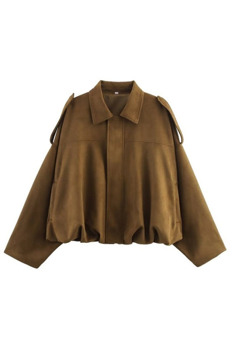 Cropped light Brown Suede collared jacket