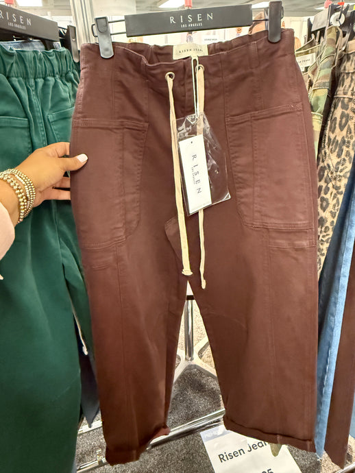 Risen Jeans- Chocolate Brown wide leg cropped barrel jeans