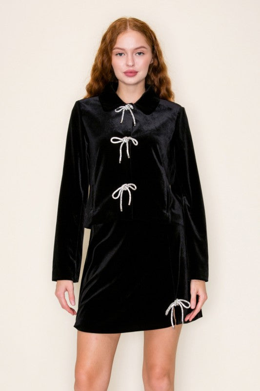 Black velvet side slit jewel detailed skirt