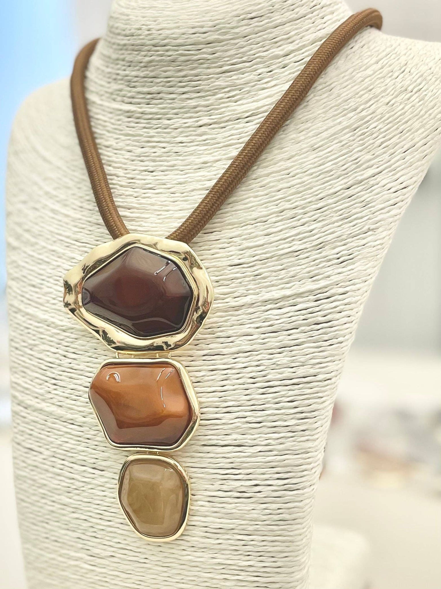 PENDANT - 3-Tier Stone Pendant (brown) NK553