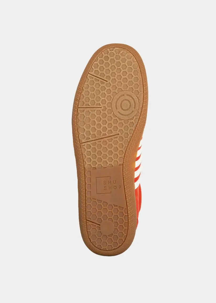 The sneaker that commands attention. STEVIE in Coral Suede ( looks like red) delivers a burst of vibrant energy with its bold red hue, vintage stripe detail, and sporty silhouette. Made for days when your outfit needs a little extra fire, this retro-cool design pairs just as effortlessly with denim as it does with flowy dresses and cargos. Style meets attitude-without trying too hard. Key Features Upper: Faux suede in Coral Red with white side stripes Closure: Lace-up front in light grey Lining: Soft textile lining for a flexible feel Sole: Gum rubber outsole for a nod to vintage court styles Style: Retro sport-inspired sneaker Fit: Runs true to size