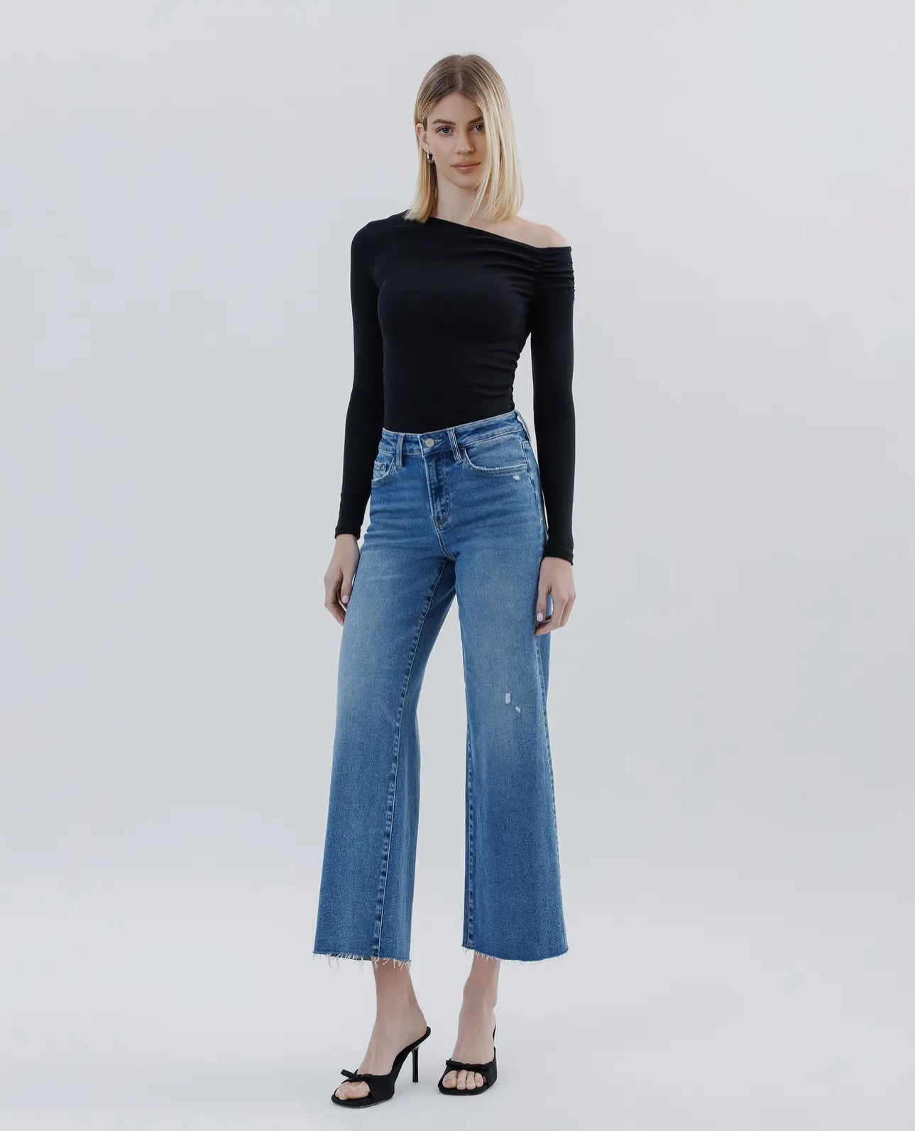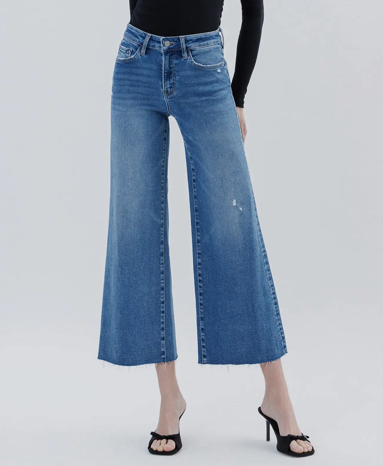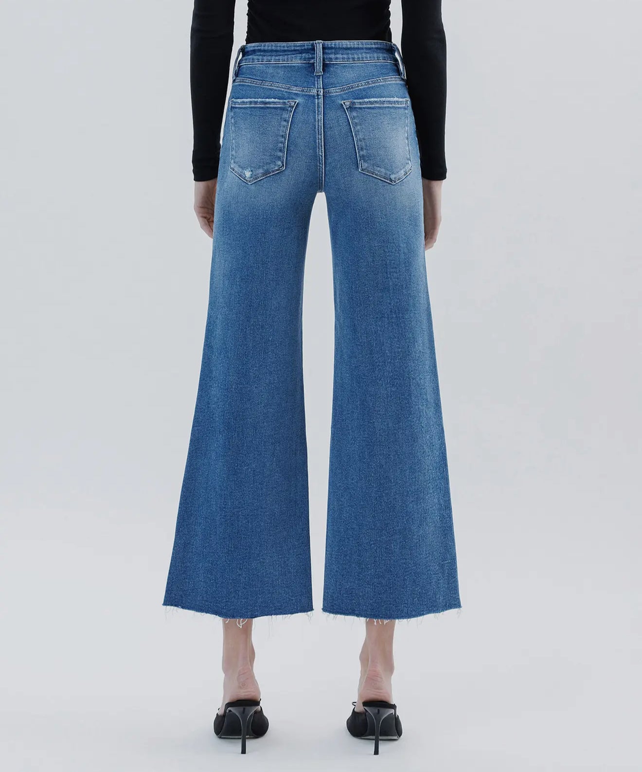 VERVET- High Waist Raw Hem Cropped Wide Leg Jeans V3667
