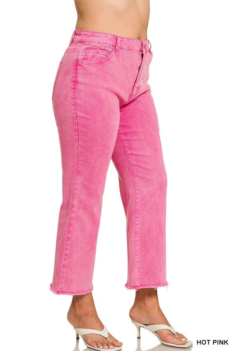 Zenana Plus washed high waisted kick flare raw hem jeans