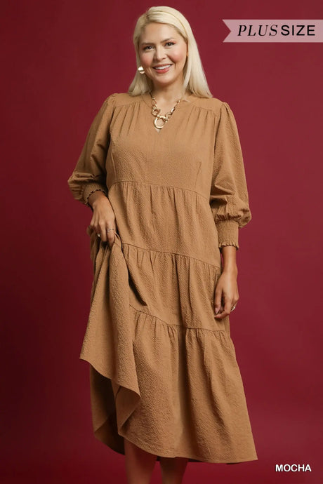• Plus Fall Day - Mocha Textured Tiered Midi Dress