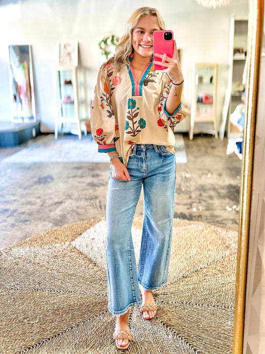 Plus Fall Garden - Ecru fall esthetic Floral print top