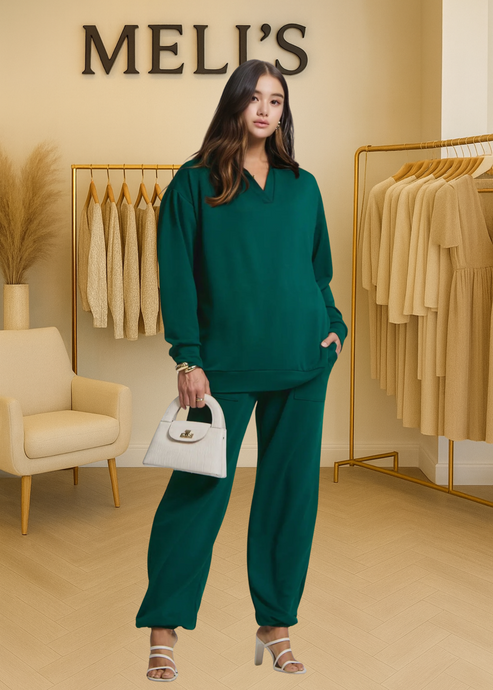 Plus Allie- Hunter Green 2 piece French Terry Jogger set