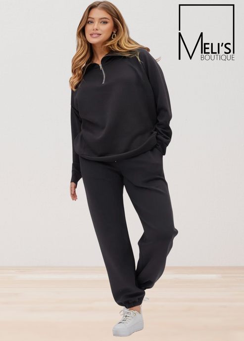 Plus Christie- Black Quarter zip two piece modal set