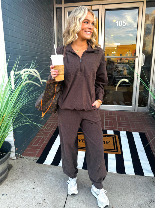 Espresso Ribbed luxury Ribbed cocoon quarter zip top