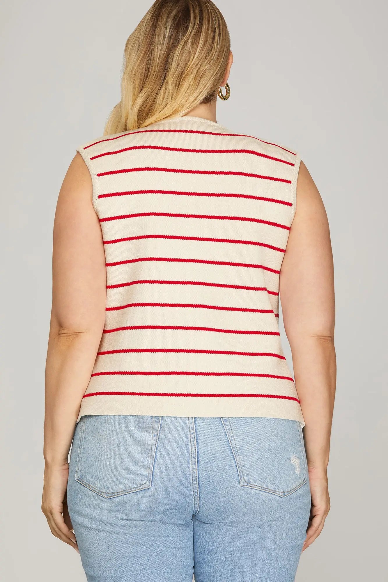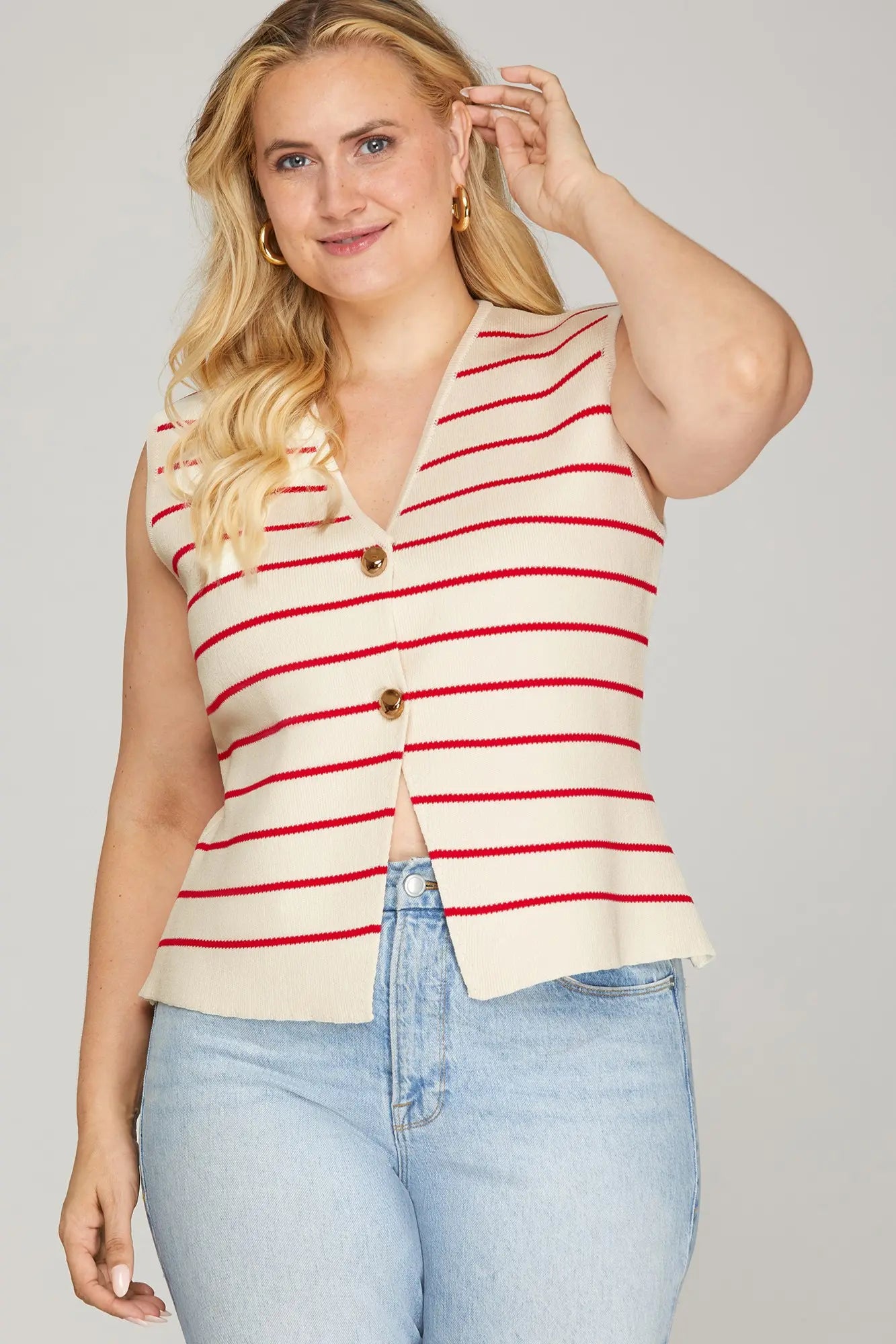 Curvy sizes- NITSA- Red striped sleeveless vest gold buttons