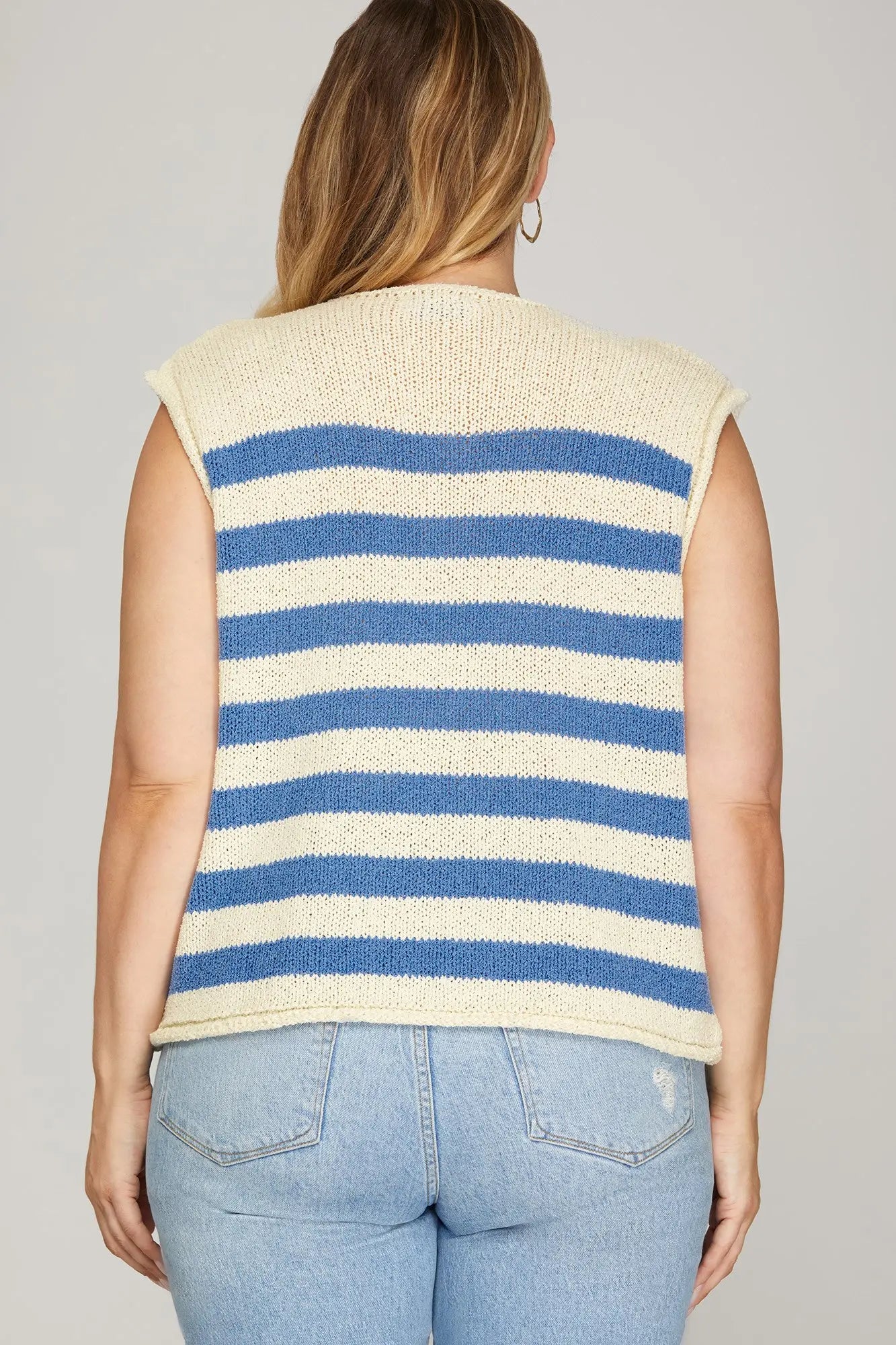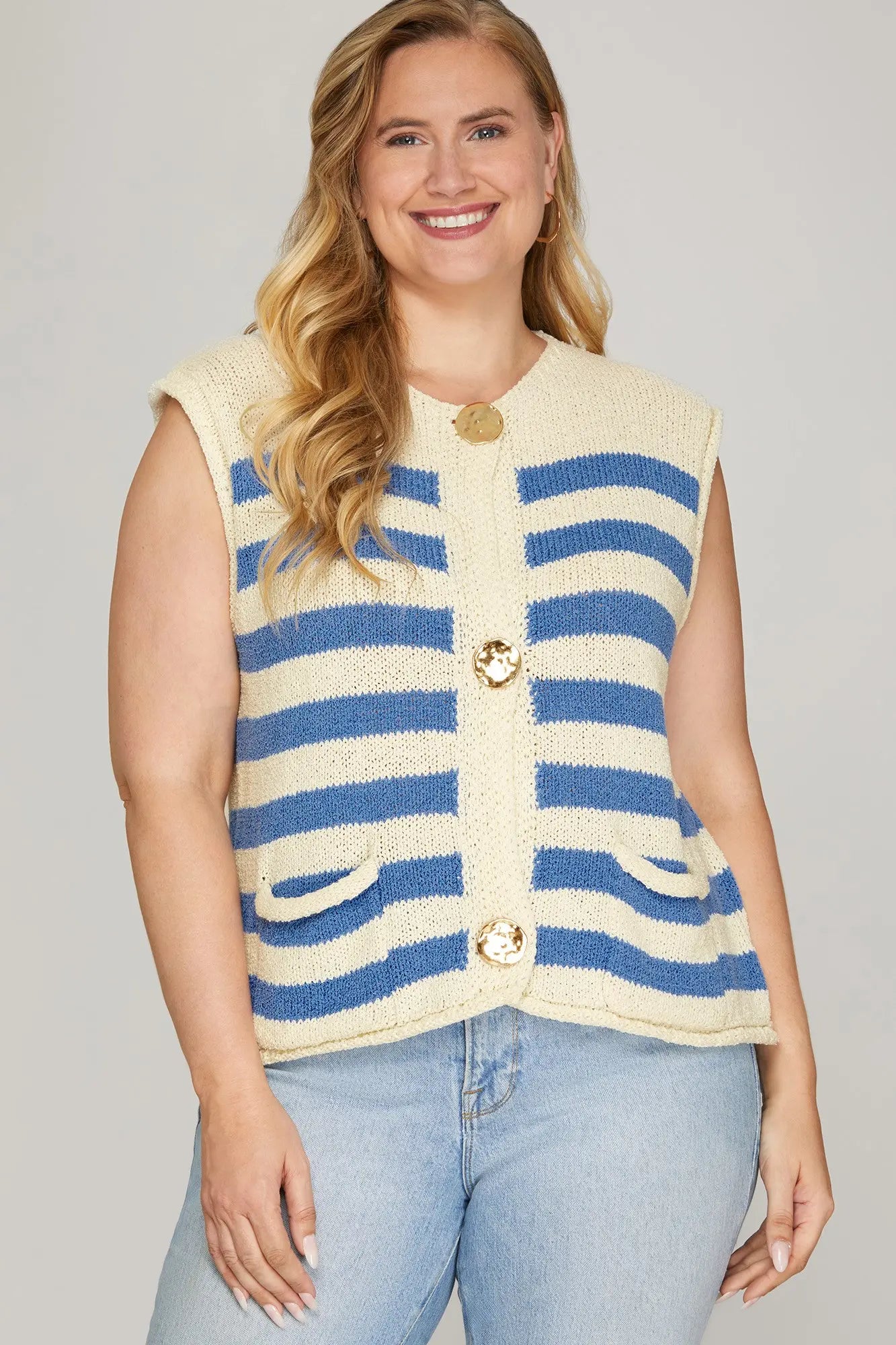 Curvy sized Lara- Boxy blue striped sweater vest
