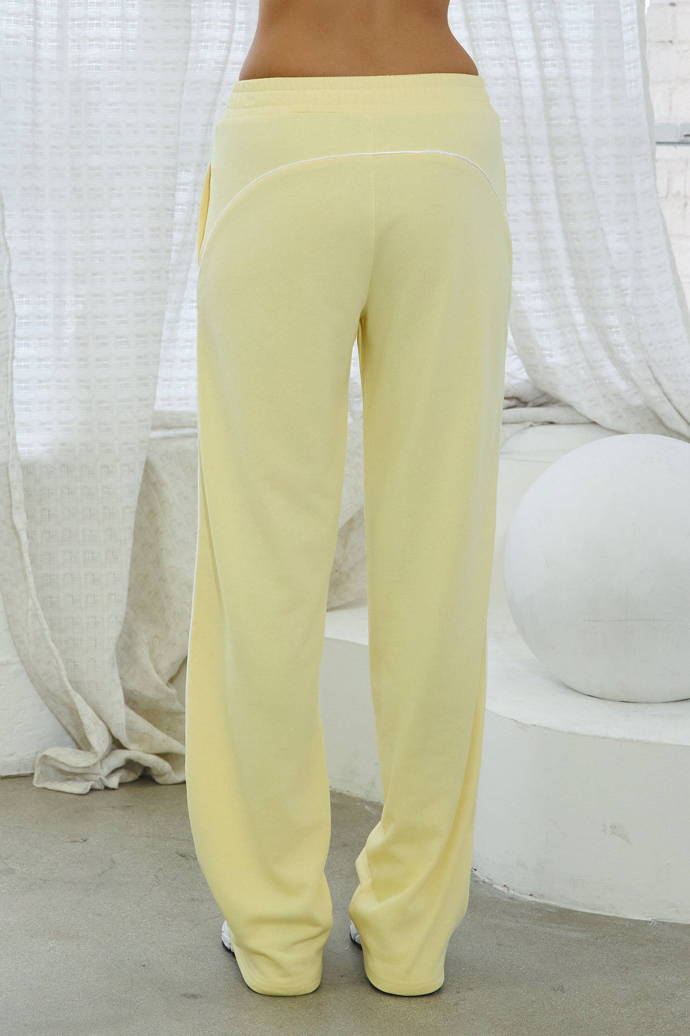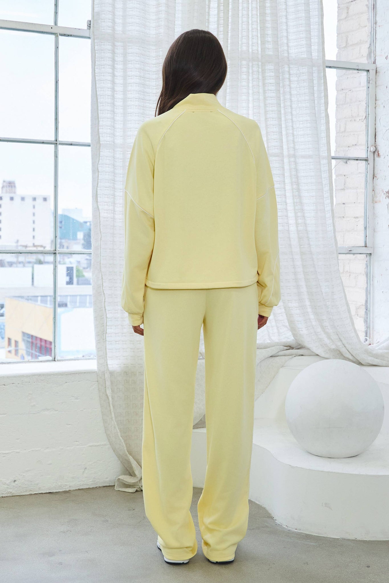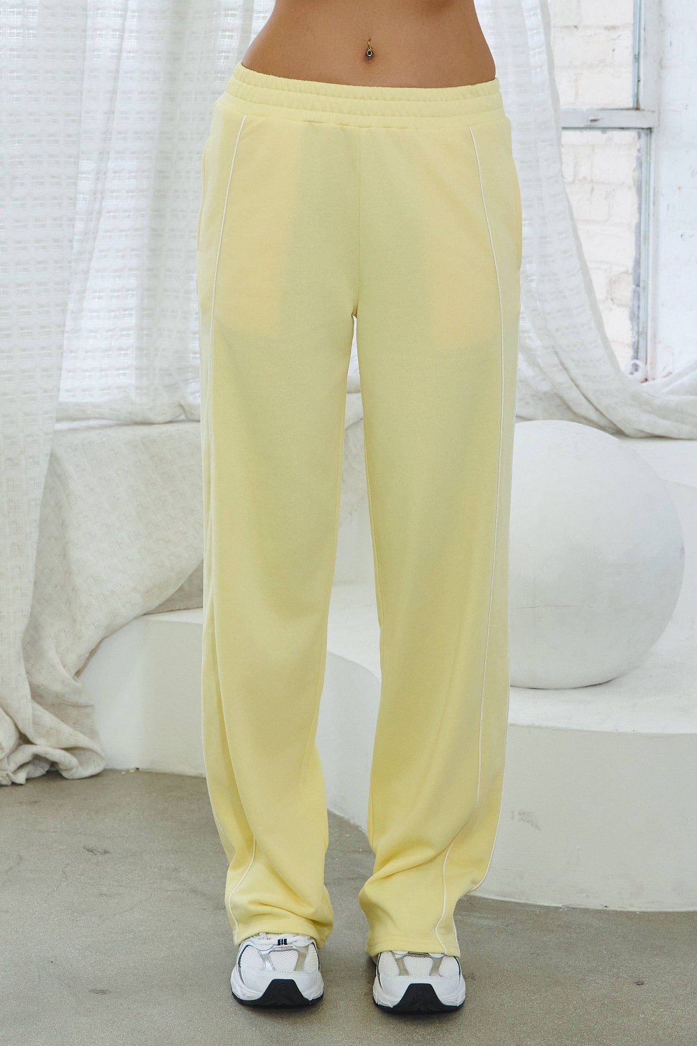 Butter Yellow French terry tracksuit set w/ piping trim and adjustable top