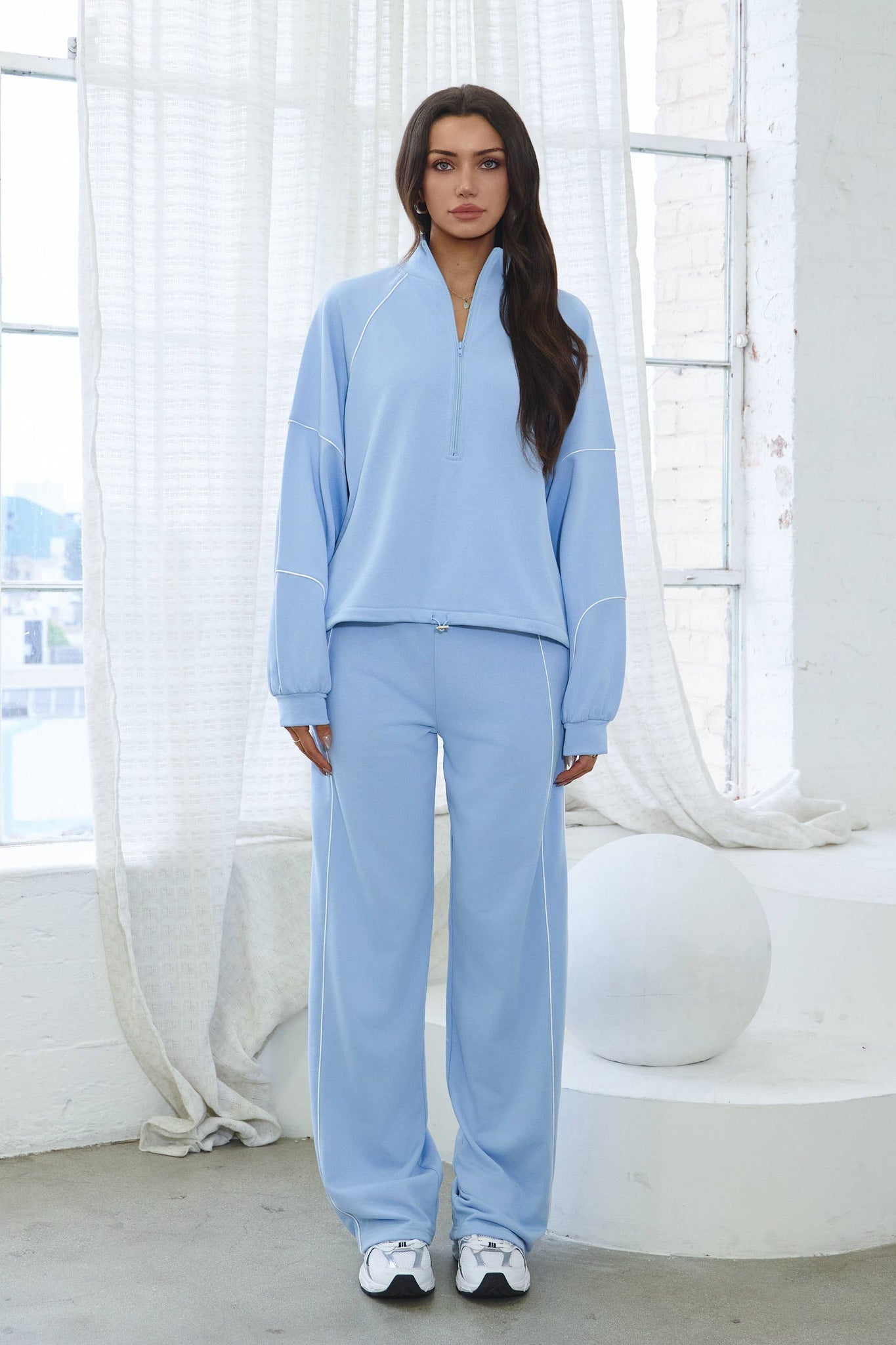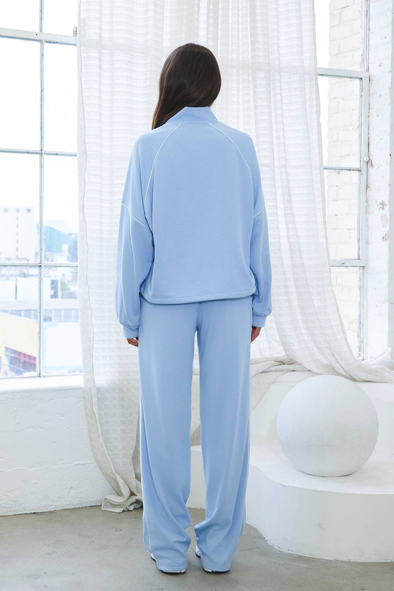 Powder blue French terry tracksuit set w/ piping trim and adjustable top